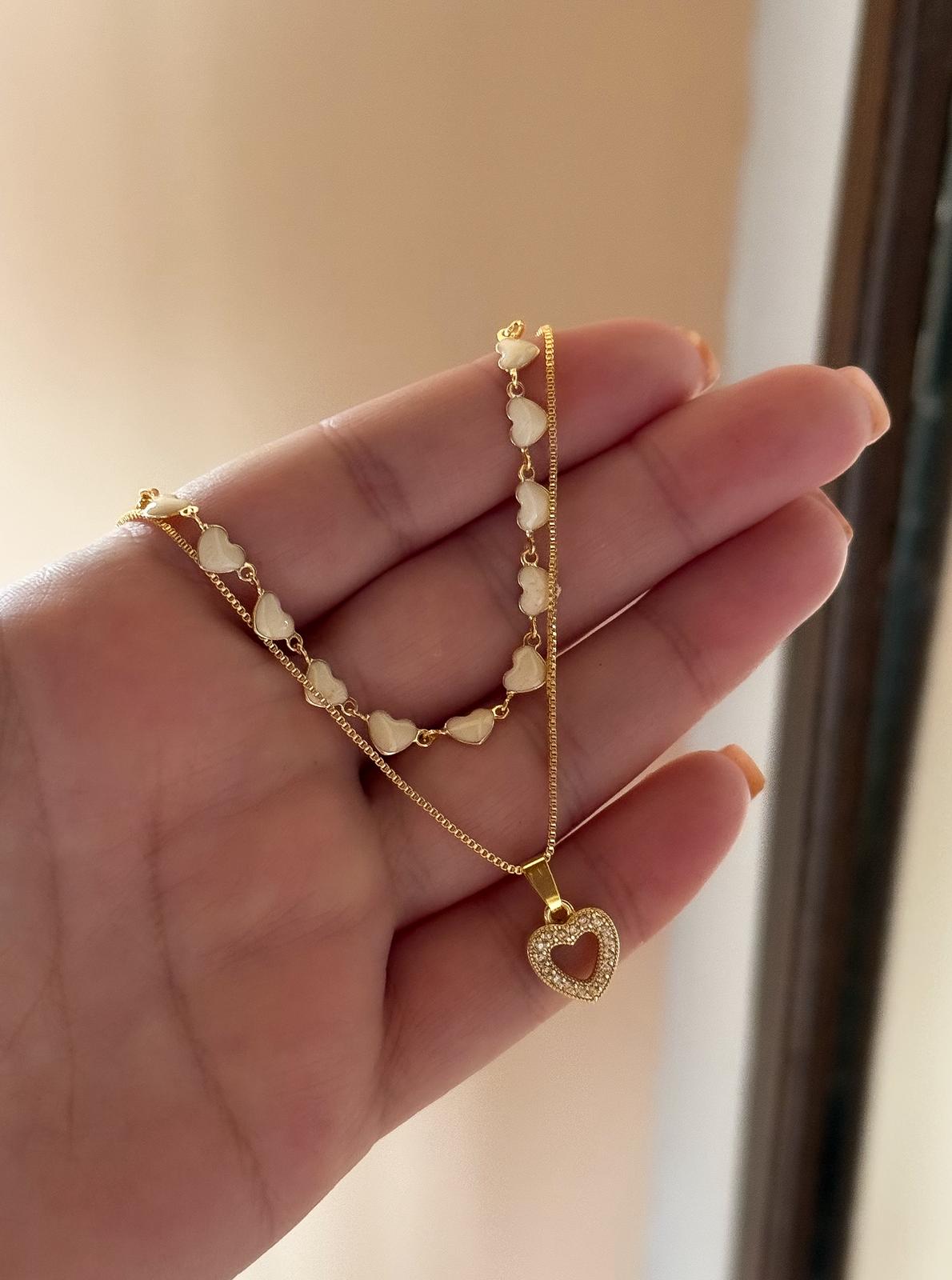collar doble de corazones