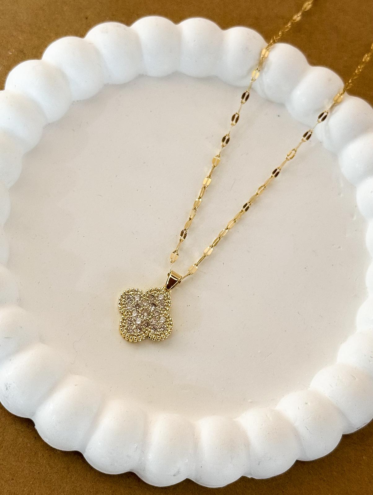 collar trebol / acero dorado