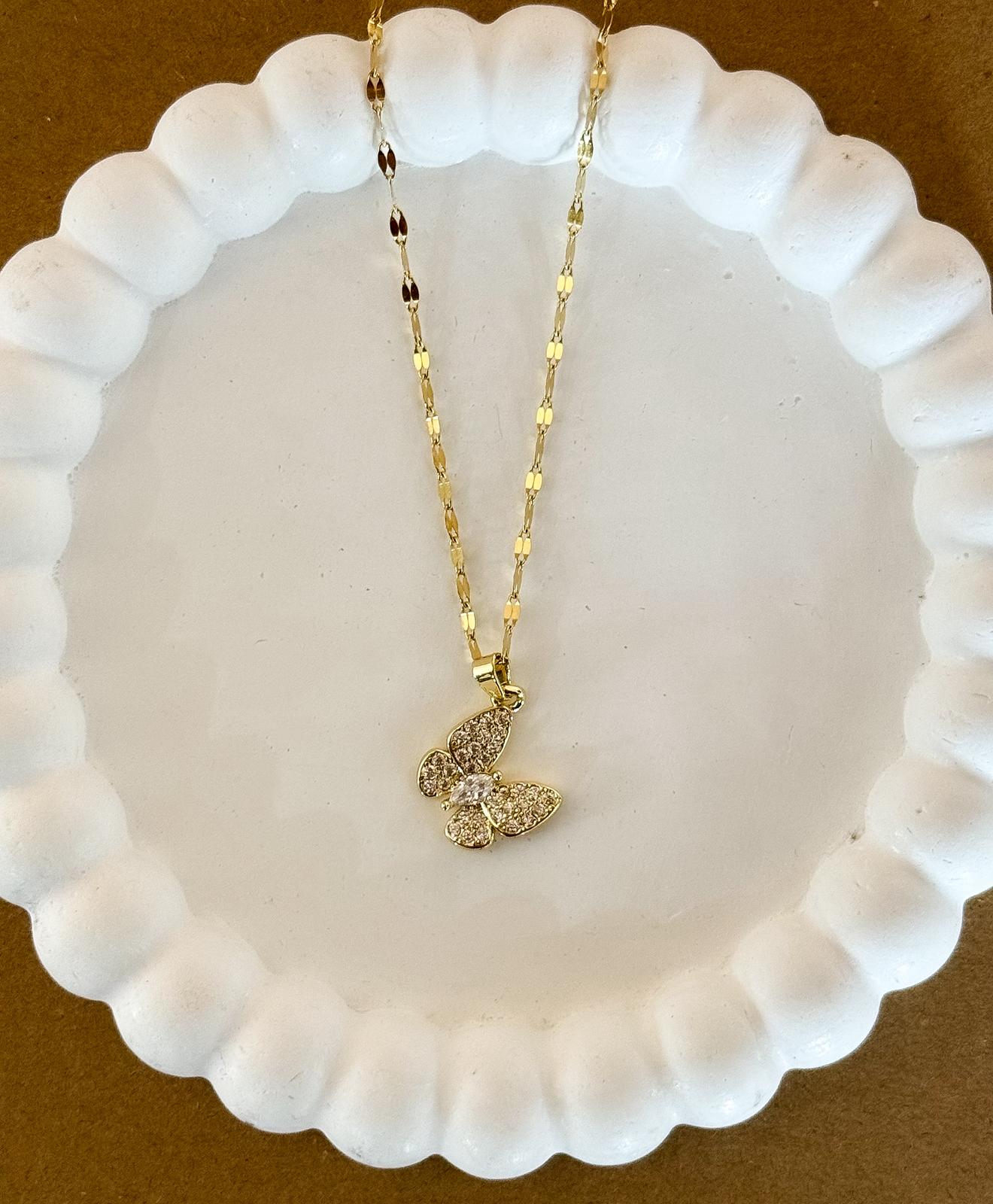 collar mariposa / acero dorado