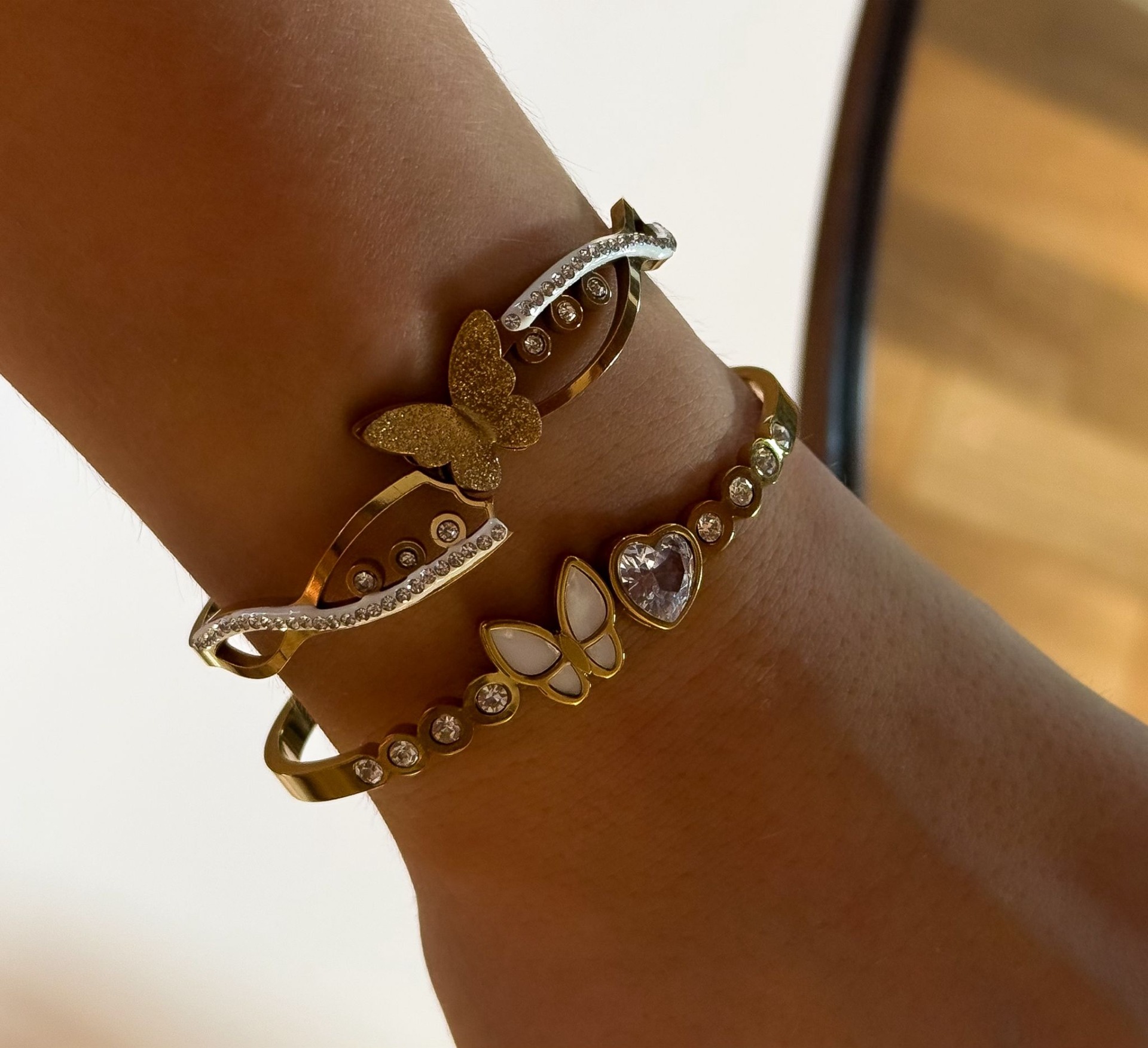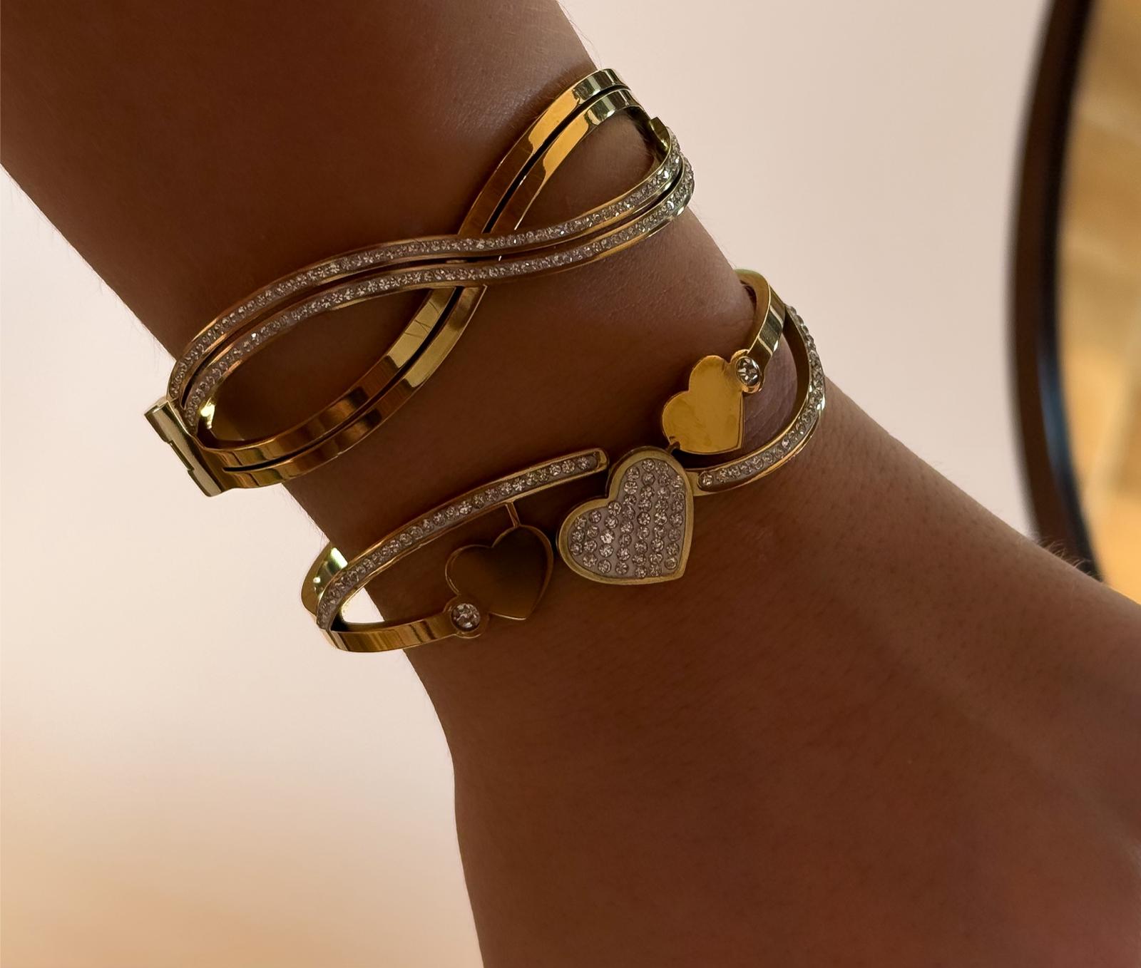 esclavas acero dorado